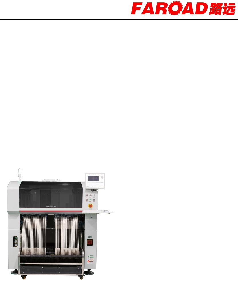 深圳市路远智能装备有限公司 深圳市宝安区沙井镇黄埔路 52 号路远科技园 服务电话: 15811826332 路远多功 能贴片机资料书 一、产品信 息 品牌:FAROAD 路远 名称:多功能 贴片机 型号:CPM-F3 产地:中国深圳 二、机器图 片 三、机器特 点 进口 X Y 直线电机驱动 、速度更快、 更稳定。 先进工业飞行 扫描相机实现 零时差零停顿 高精度元件识 别。 高精度热补偿 系统实现实时 监督贴装精度 并自动修正。 吸…