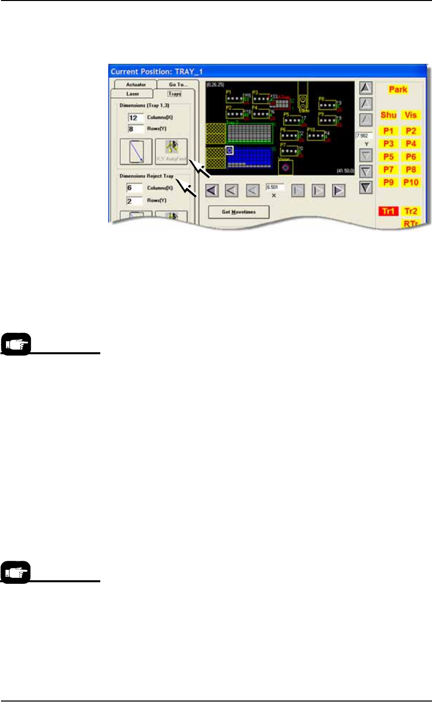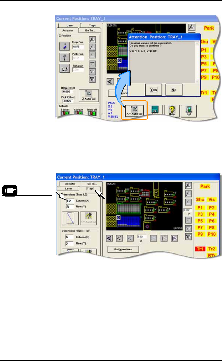Figure 3-39: The X,Y AutoFind button for trays is on the Trays tab, as