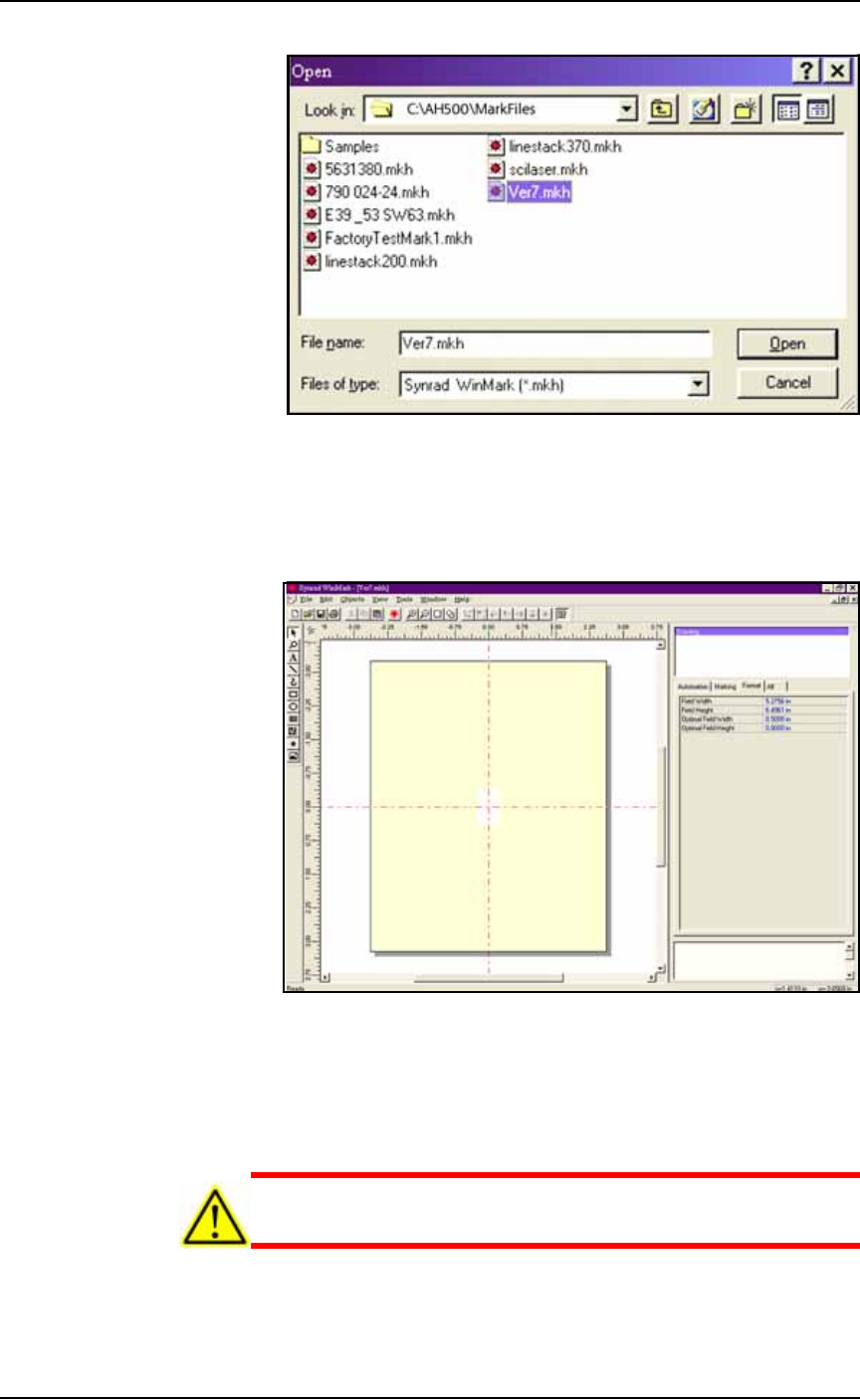 Figure 3-52: Selecting a laser marking file. (WinMark software is not