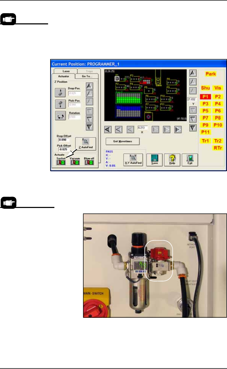 Figure 4-3: The Gantry window shows the Socket Actuator air ON (for