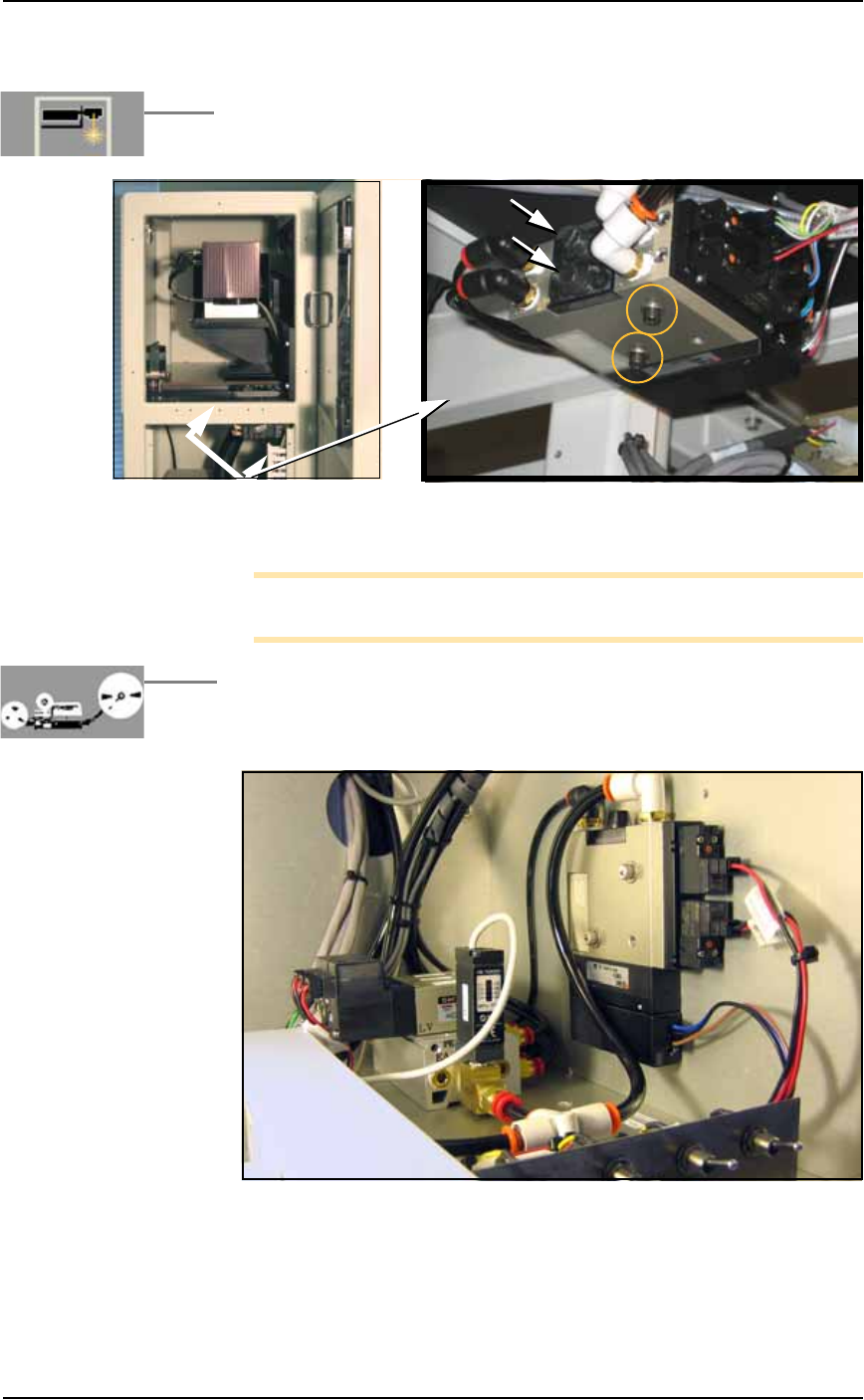 ■ Workspace, Head and Gantry ◘ Vacuum Generator Filters and Silencers PS Series Owner’s Manual 4—17 back 3. Reinstall V acuum Generator— 3a. Reinstall the generator (after installing a filt er and silencer). 4. [ Marking…
