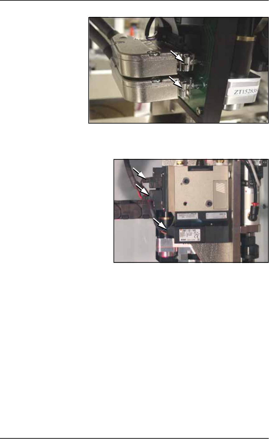 ■ Workspace, Head and Gantry ◘ Inspecting Gantry Parts PS Series Owner’s Manual 4—25 back Figure 4-21: PNP head sliding retaining clips. 1c. Check gantry wiring harness plug connections and make sure that they are secure…
