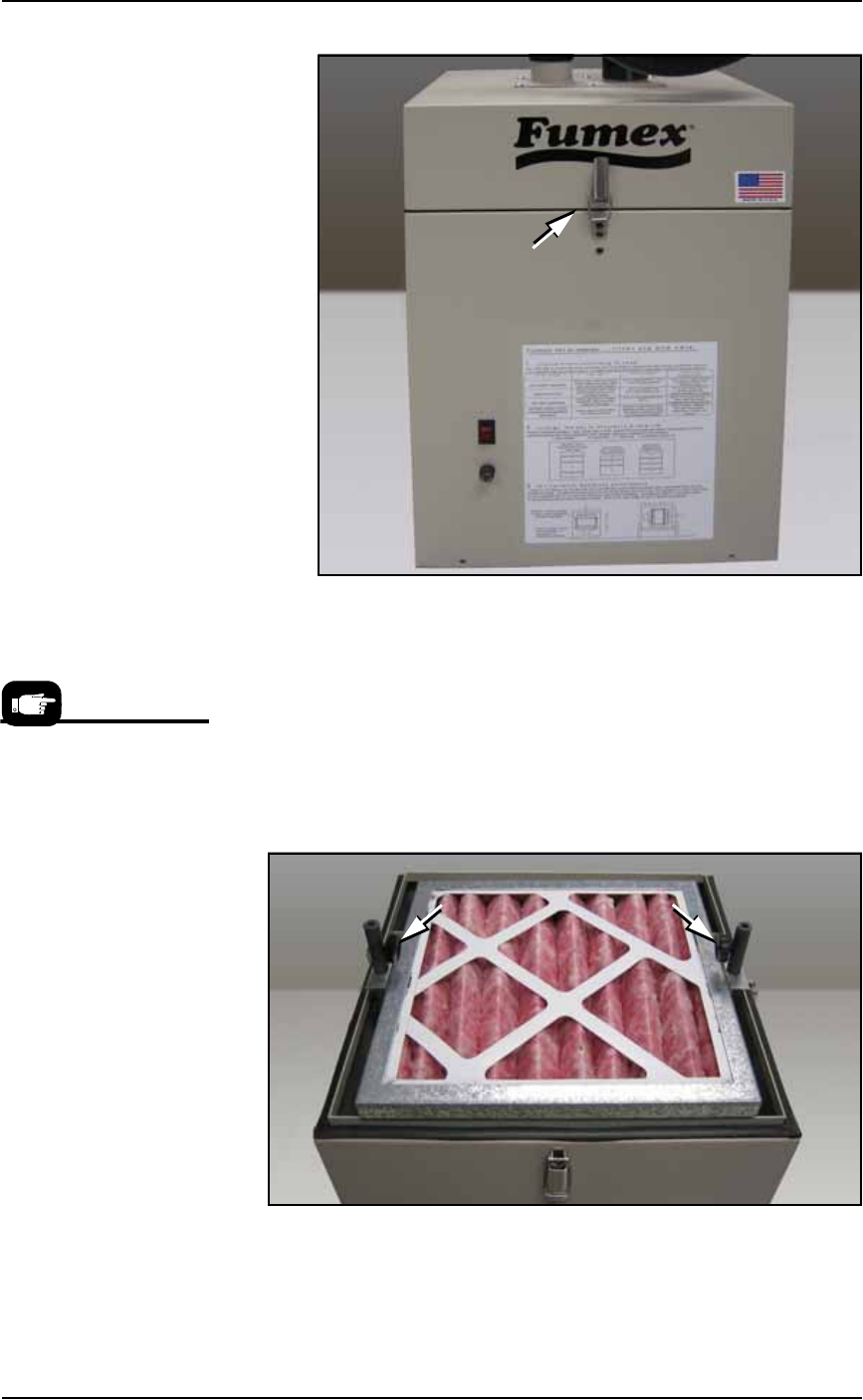 Figure 4-43: Knurled knobs release the pleated filter. The Pre-filter has
