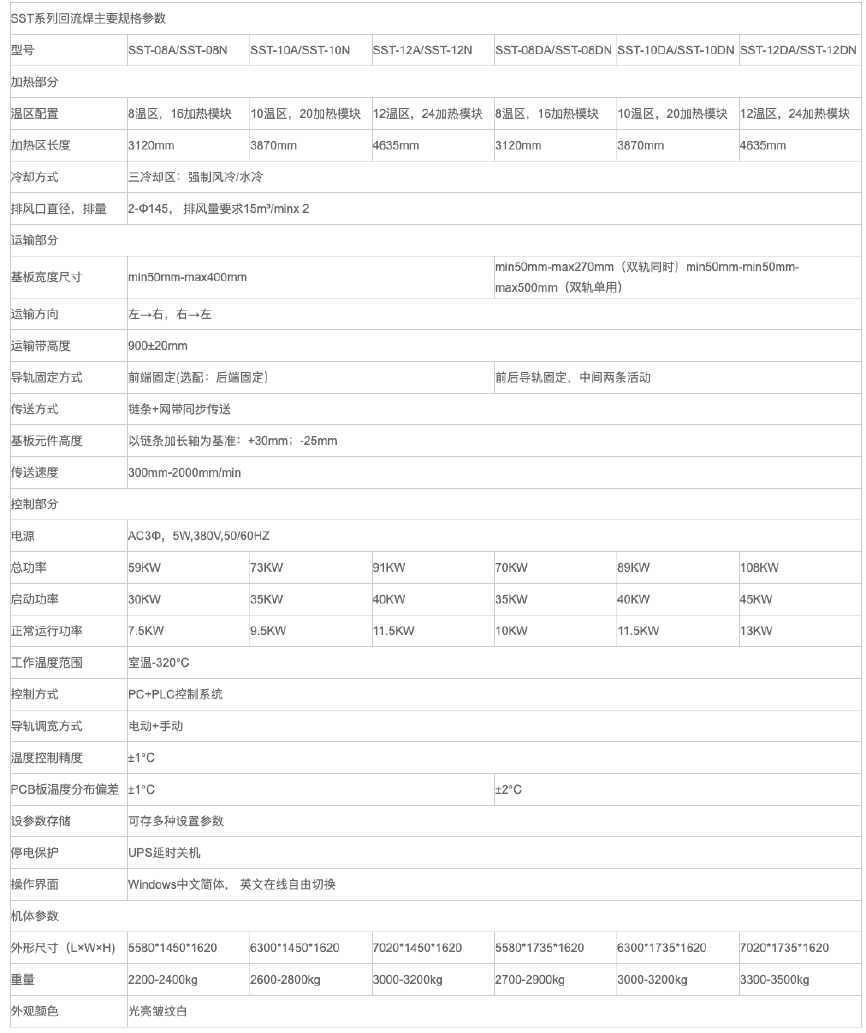 在线预览 SST系列回流焊主要参数规格 PDF 文档。