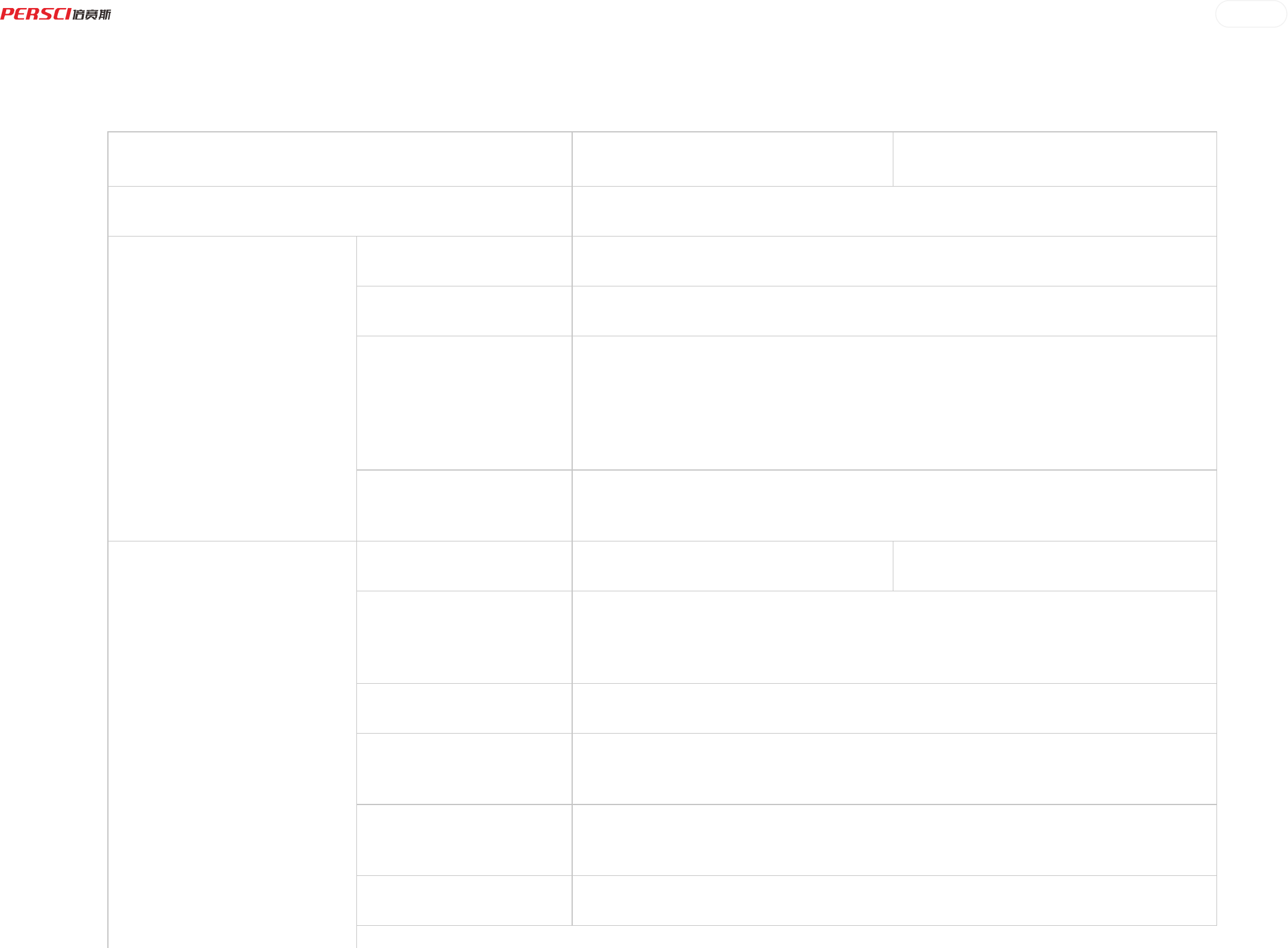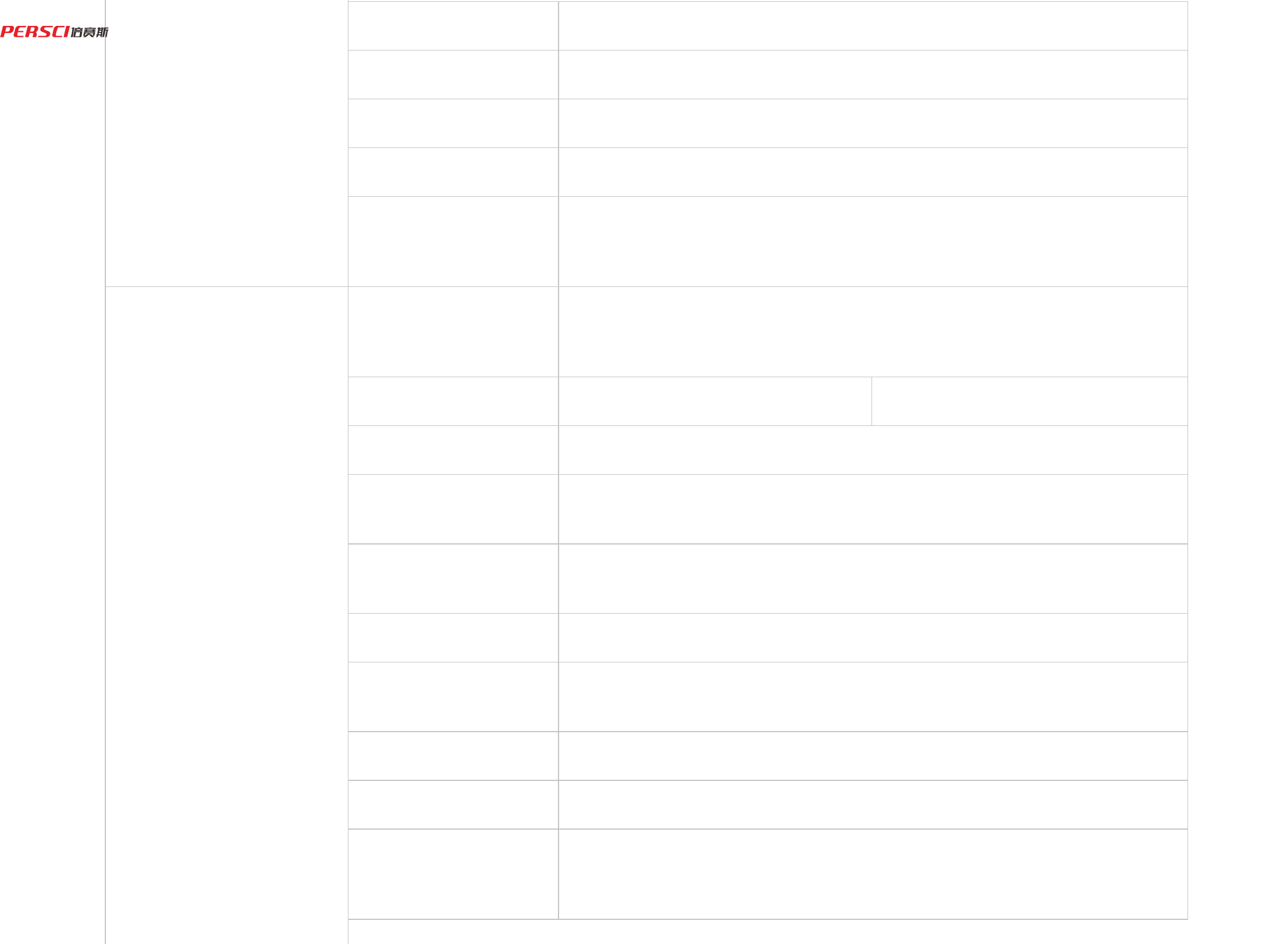 Parameter PRODUCT PARAMETERS