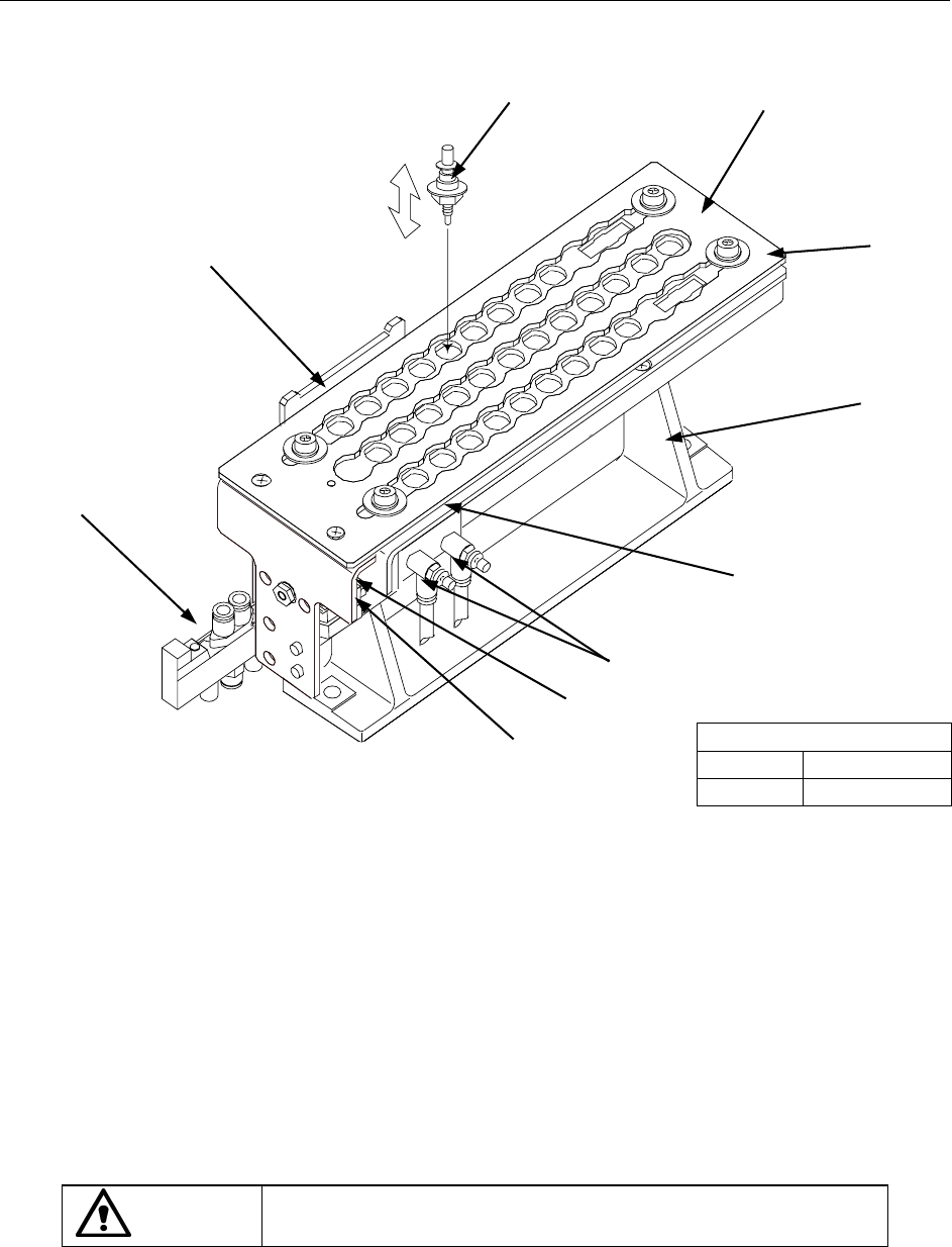 第 3 章 保养 Rev03 3-20 3-3-9 送料器台 在送料器台上安装带式送料器等送料器前,应先将其擦拭干净,以确保没有灰尘和异物。 请确认“安装板 B③”的下部是否有异物混入。 当有芯片等异物时,请用吸尘器等予以清扫。 6 2 4 1 5 3 7 图 3- 22送料器台 ①送料器台 ⑤驱动气缸 ②安装板 ⑥位置标签 ③安装板B ⑦台架标记 ④锁定杆 危险 为防止因意外启动而引发事故,请在切 断电源后进行清扫作业。
