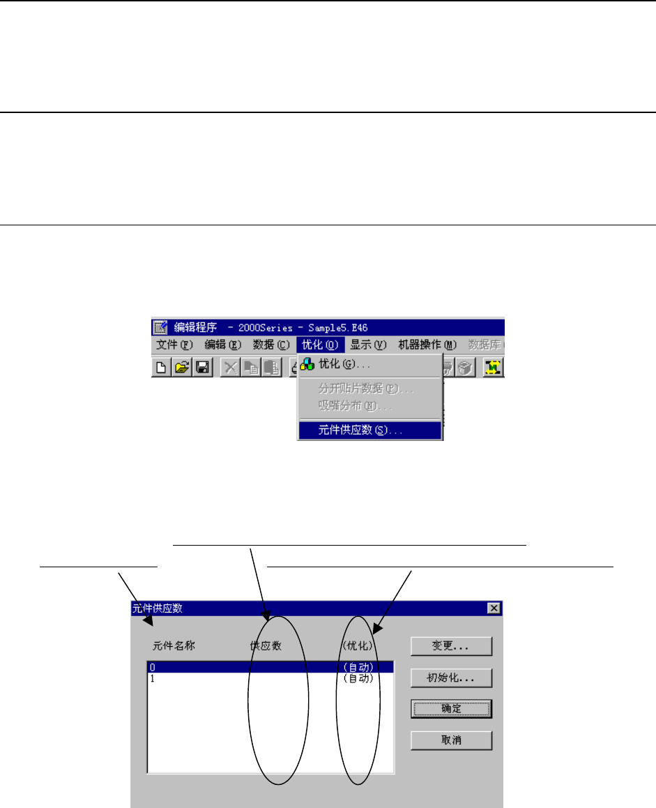 随着上述的“元件供给数的设定”与该项的“优化条件的设定的变化”,优化的结果将发生