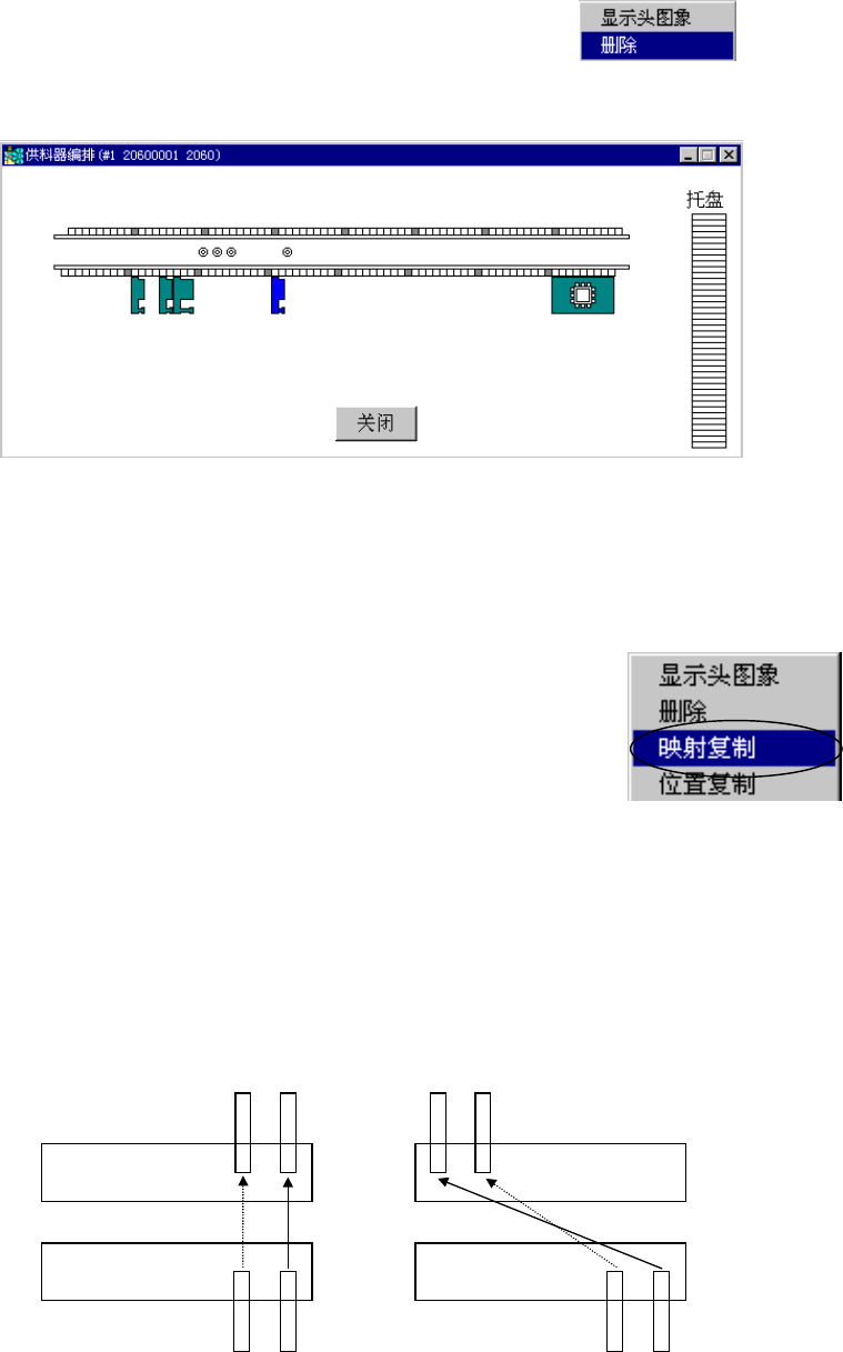 贴片头图象显示模式中,贴片头的间隔以图象形式显示。将送料器配合贴片头间隔进行配置,