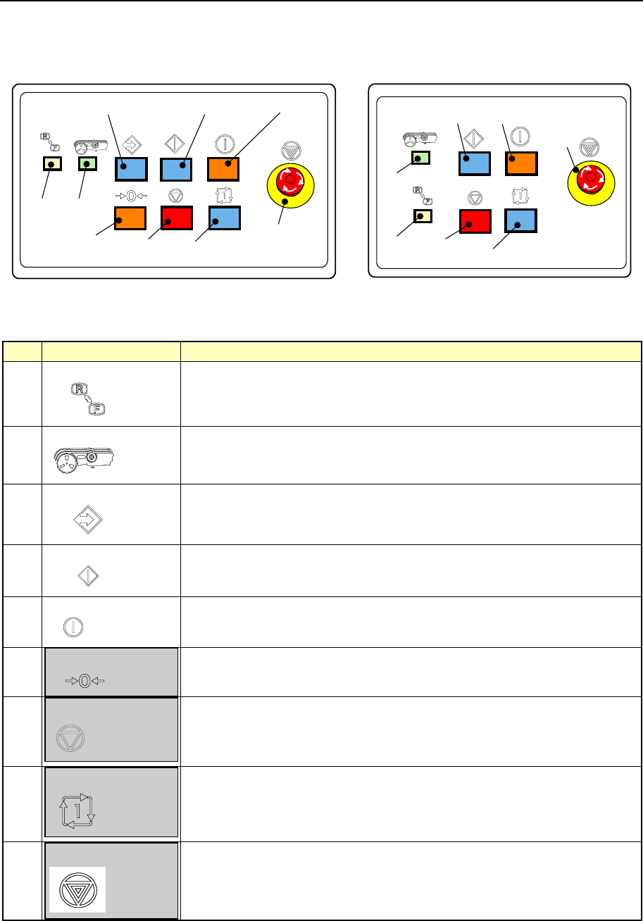 第 1 章 设备概要 Rev03 1-17 1-4-7 操作面板 可通过主机的操作面板来控制机器的动作。 < 前 面 > < 后 面 > 图 1- 14 操作面板外观图 表 1- 7 开关功能概要 No 开关名 功 能 1 KEYBOARD 键盘 ·进行键盘操作的<FRONT>、<REAR>切换。 ·按下该开关,则指示灯点亮。 2 FEEDER 送料器 ·进行送料器单元有效/无效的切换。 …
