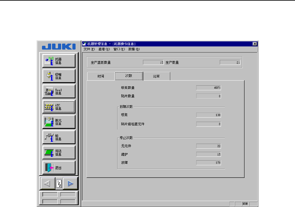显示机器的运行时间(累计基板生产时间等)、吸嘴拆装次数等设备固有的运行信息。