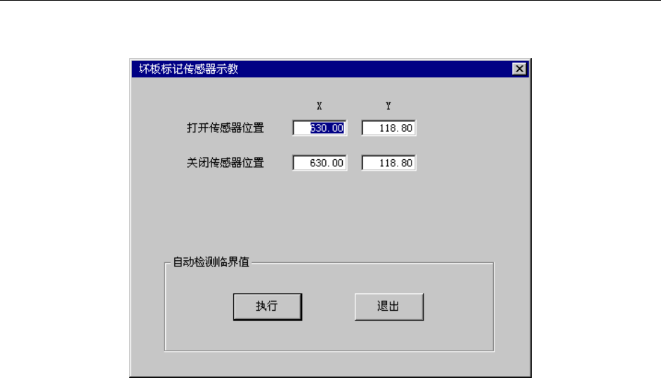 2. 要进行打开传感器位置、关闭传感器位置的示教,输入坏板标记的中心位置和基板位置(无