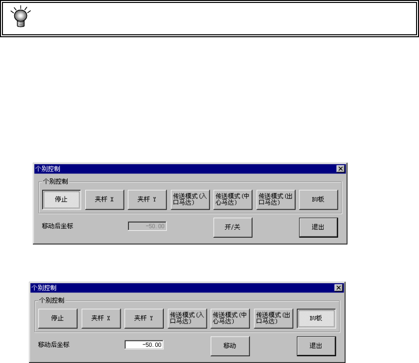 ● 在 “个别控制”的项目时,选择“支撑台”时,还可指定“移动后坐标”(支
