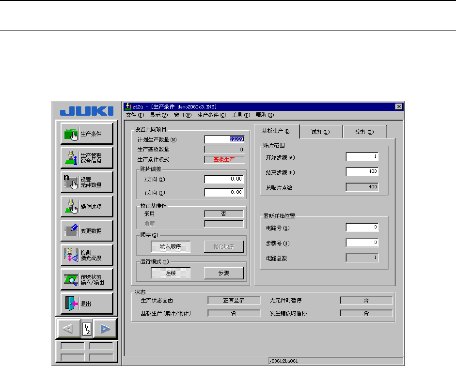 根据“基板生产”、“试打”、“空打”各种生产模式,分别设定各自的生产条件。