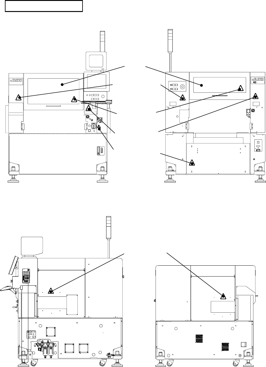 V 警告标识的粘贴位置 K E -206 0 【正视图】 【后视图】 【右侧面图】 【左侧面图】 小心活动部的标识 小心活动部的标识 小心被卷入的标识 小心高压的标识 小心活动部的标识 安全盖