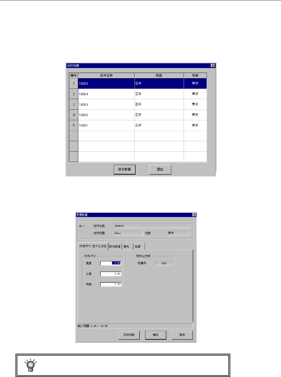 元件数据的内容中,送料器种类等部分信息不能变更。