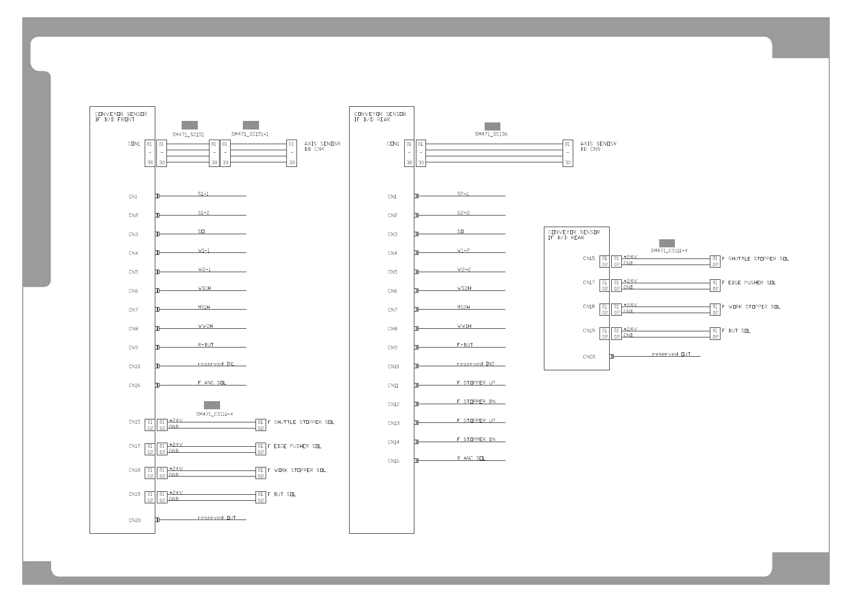 Page SAMSUNG TECHWIN 123 SM471 C onveyor Sensor IF Board NO. Lev . P ART NO. P ART NAME Q'TY Old No. Supply Supply L T Reference 1 AM03-0054 22A CABLE ASSY -CONV_LEFT_I F_BD 1 SM471_SC151 2 AM03-0054 24A CABLE ASSY …