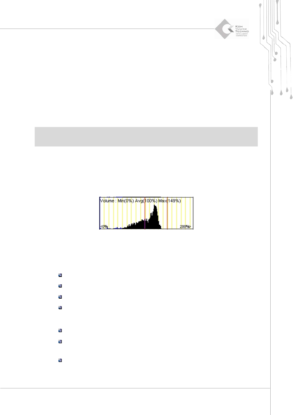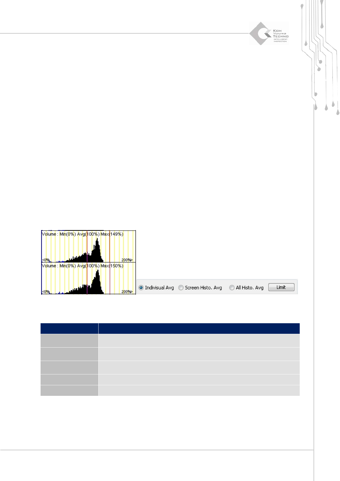 The programʹs Histogram is the menu confirming various PCB inspection results as a histogram.