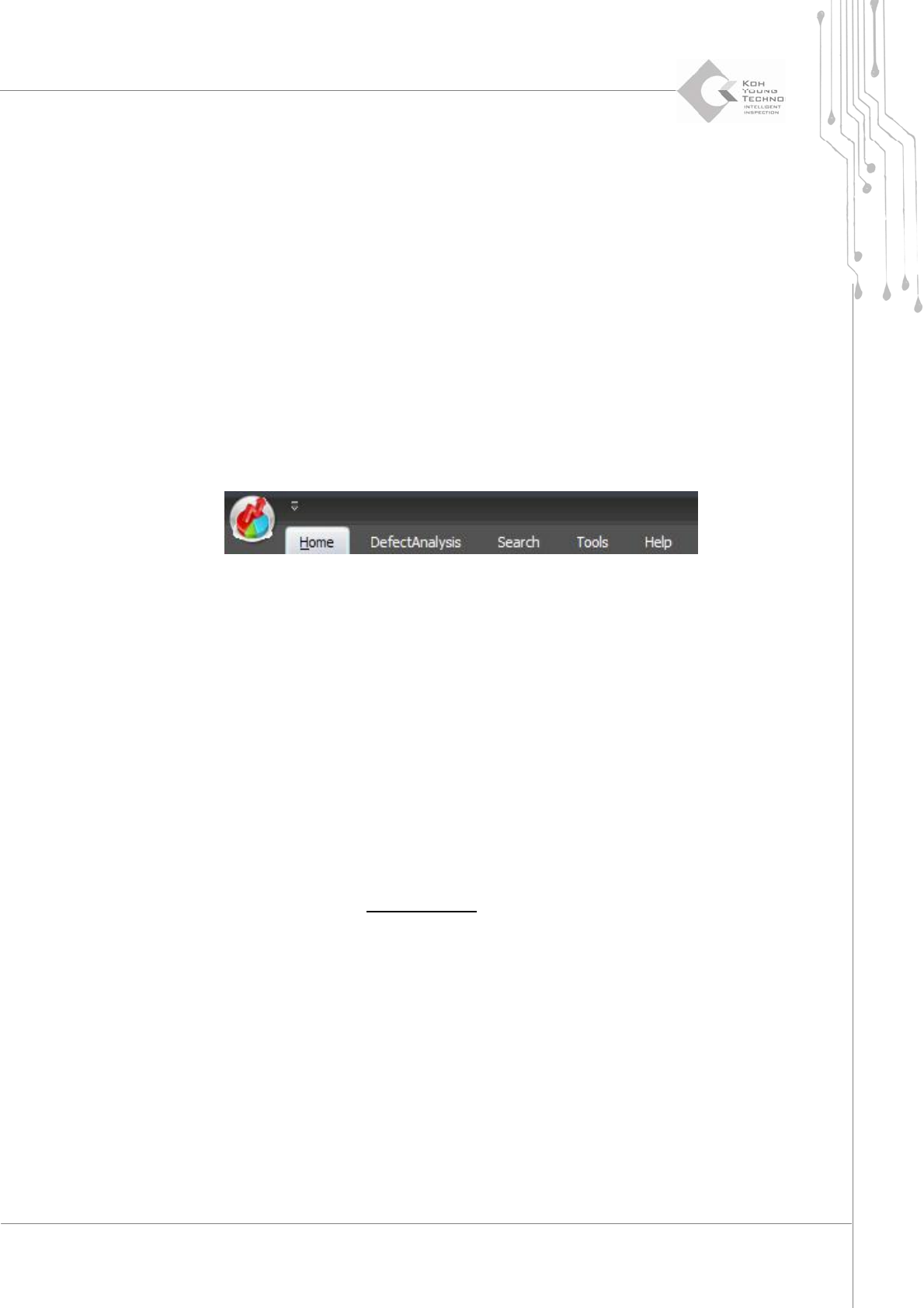 Programmer's Manual | 7 2.1. Main Menu The main menu of SP C Plus™ is at the top of the SPC Plus™ screen. It has the follow in g 4 categories: Home Defect Analysis …