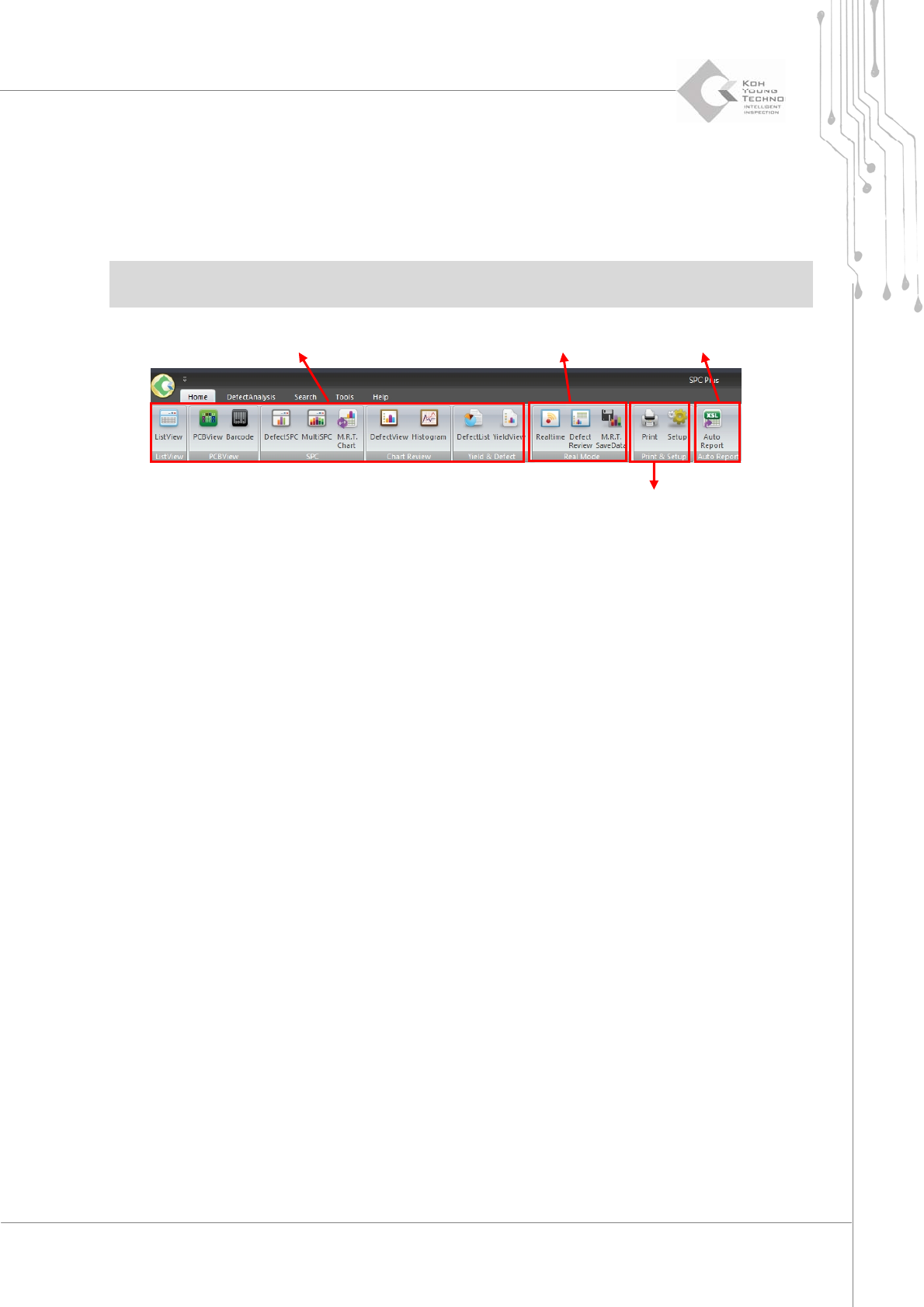 Programmer's Manual | 10 DefectView Histogram DefectList Yi e l d Vi e w Note: See 3. SPC Plus™ Functions in Chapte r 5 for more det ails. Note: PCBV iew , DefectV iew , …