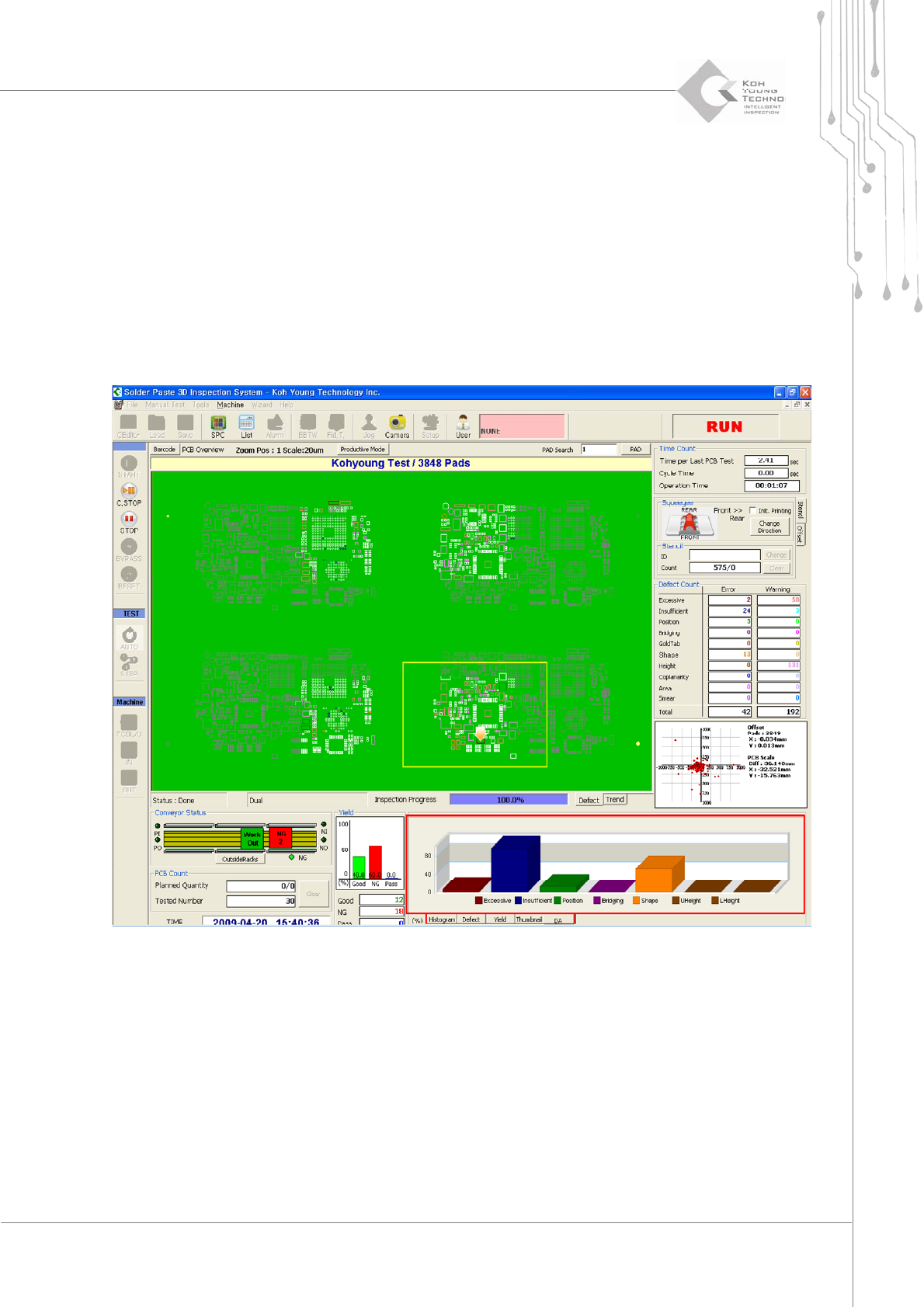 distinguished before and after printing, the defect location & deviation, cycle, and