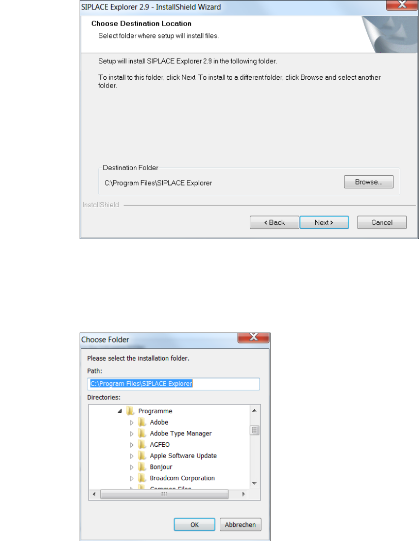 standardmäßig eingestellte Ordner ist C:\Program Files\SIPLACE Explorer.