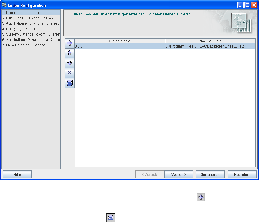 Legen Sie neue Fertigungslinien über das Symbol Linie hinzufügen an.