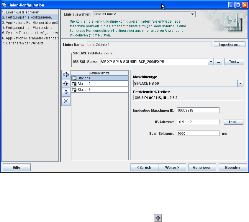 Abb. 4 - 7 Schritt 2 - Fertigungslinie konfigurieren