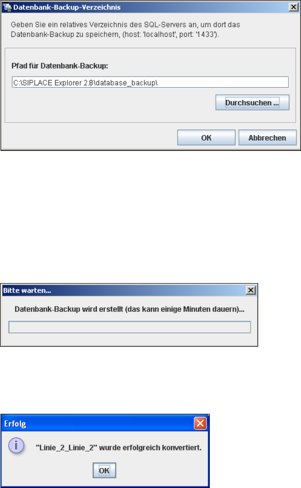 Vor der Konvertierung erstellt das System eine Backup-Datei der Datenbank. Geben Sie