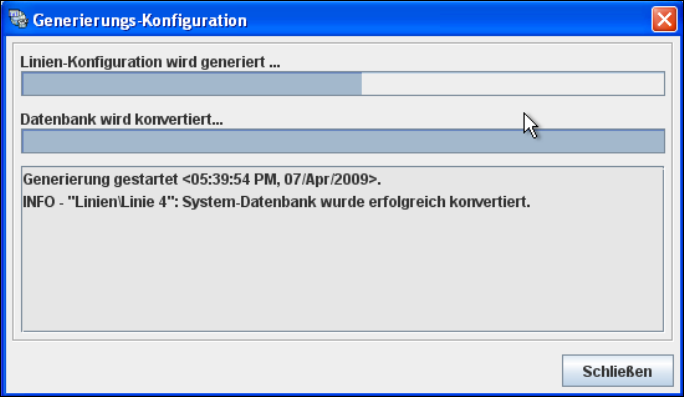 fertiggestellt. Klicken Sie in dem Dialogfenster Linien-Konfiguration - Generieren der