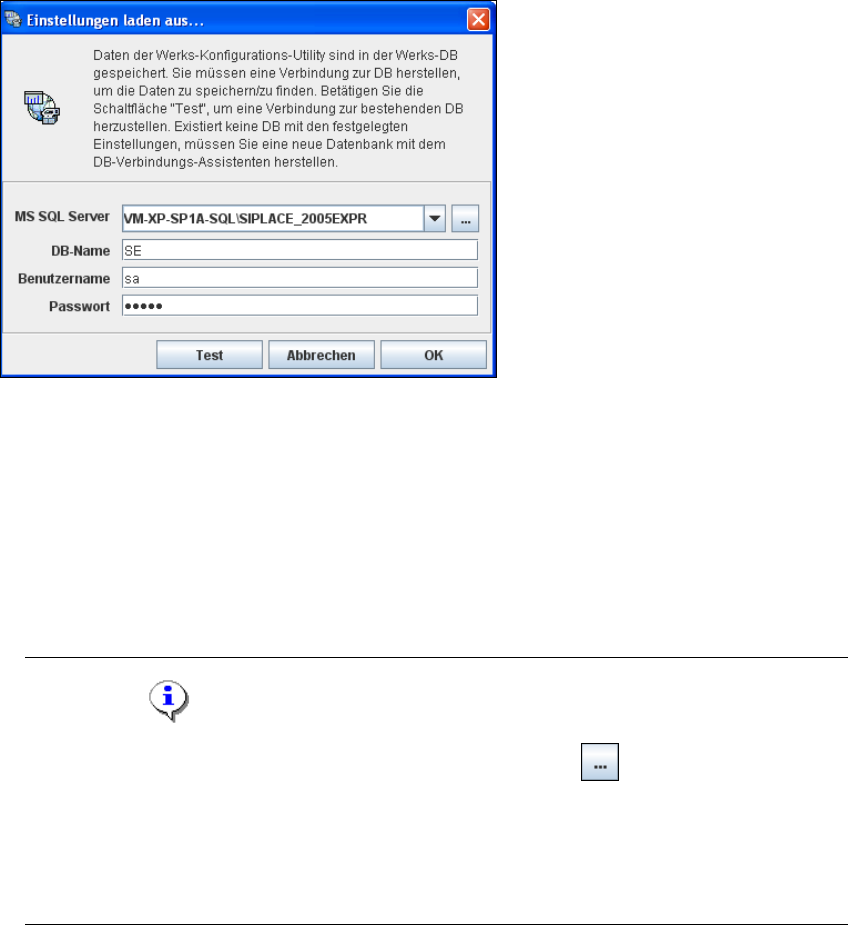 Es öffnet sich das Dialogfenster Einstellungen laden aus .... Sie müssen die Verbindung zur