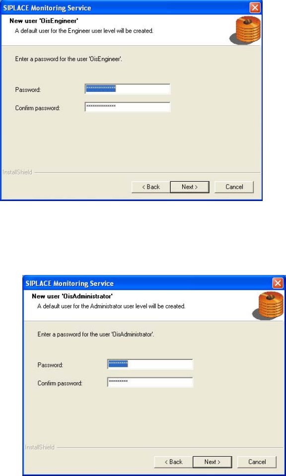 ¾ Enter the password for the OisAdministrator. The default password is "Siplace.1".