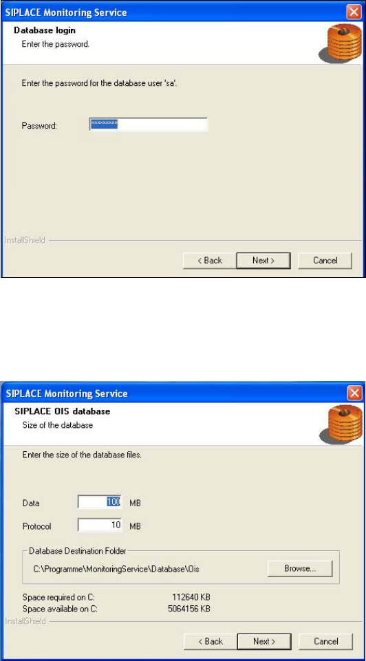 The installation routine must log in to the SQL-Server as system administrator (sa) in order to set up or