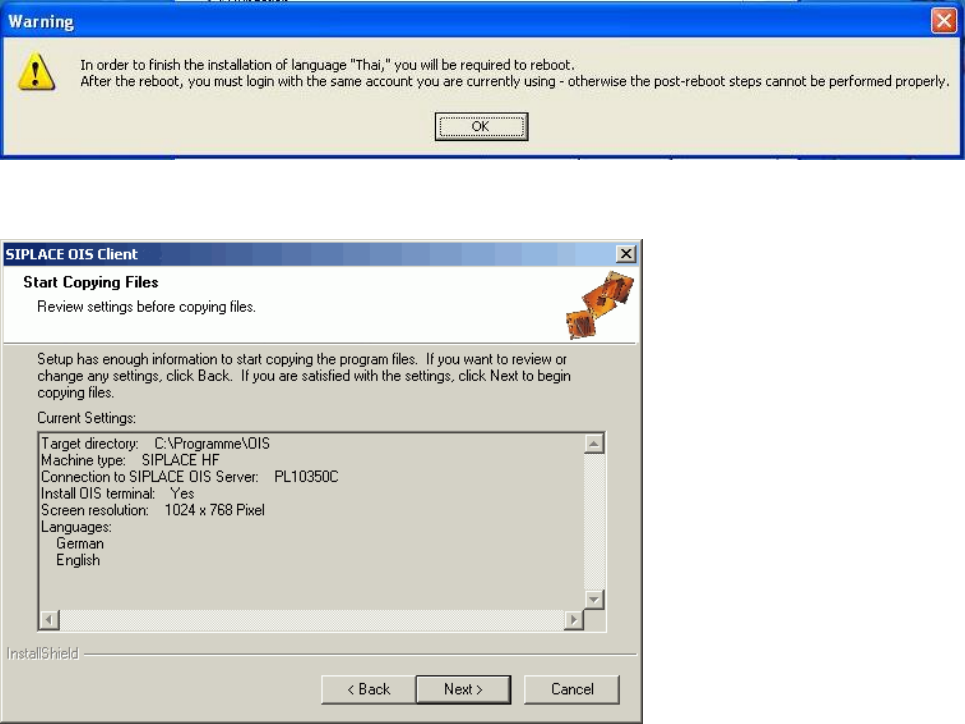 ¾ When installing some languages, this notice is also displayed. In this case, you must restart the
