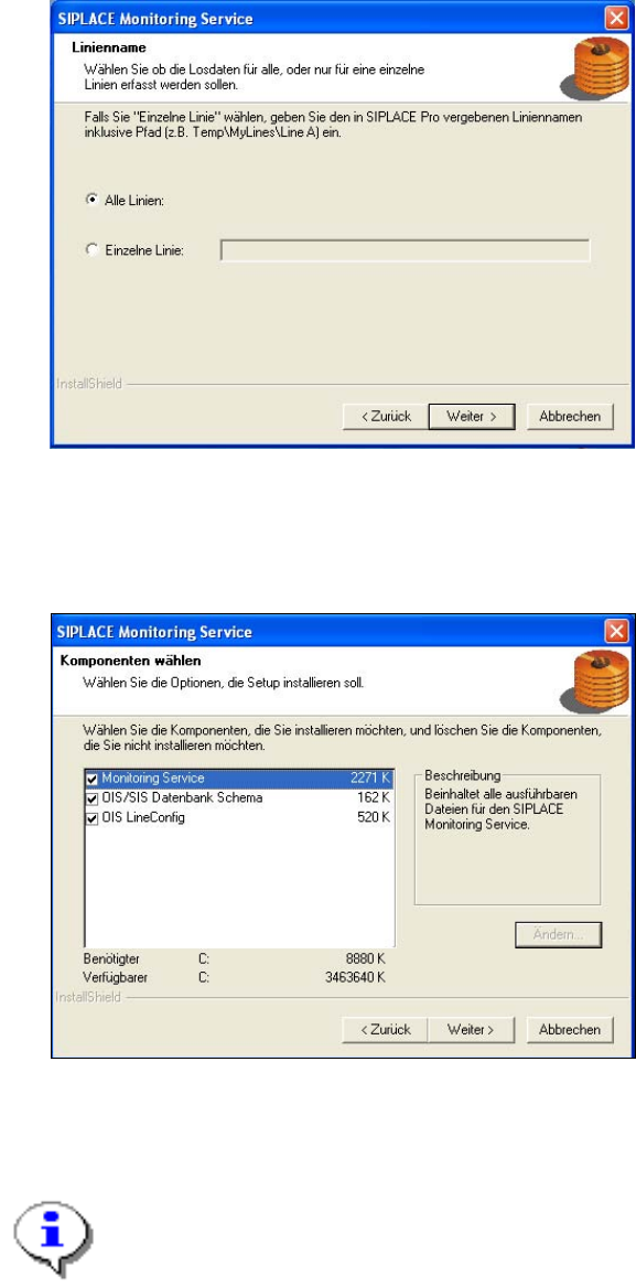 Installation Manual OIS 9.1 / Installati onsanleitung OIS 9.1 Ausgabe 02/2011 Edition 3.2.2 Monitoring Service-Installation ¾ Wählen Sie die Linie(n) für wel che die Losdaten erfasst werde n sollen. ¾ Klicken Sie auf die…