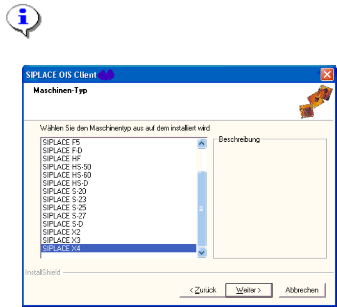¾ Wählen Sie den Maschinentyp, auf dem der OIS Client installiert werden soll.