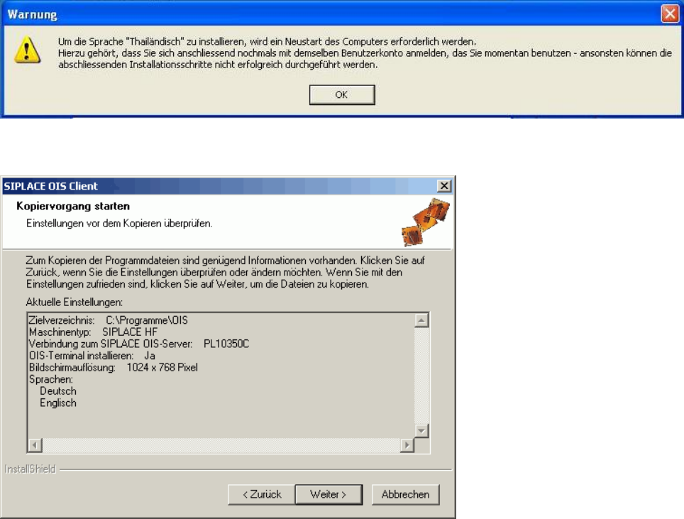 ¾ Bei der Installation einiger Sprachen wird dieser Hinweisdialog zusätzlich angezeigt. Sie müssen nach
