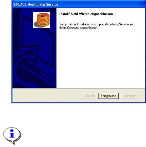 Wenn der Installationsvorgang abgeschlossen ist, erscheint der nachfolgende Dialog.