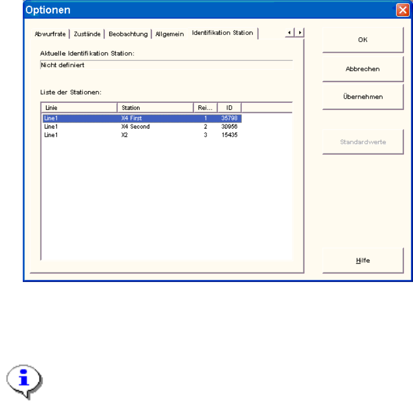 ¾ Wählen Sie im Menü Optionen den Menüpunkt Identifikation Station aus.