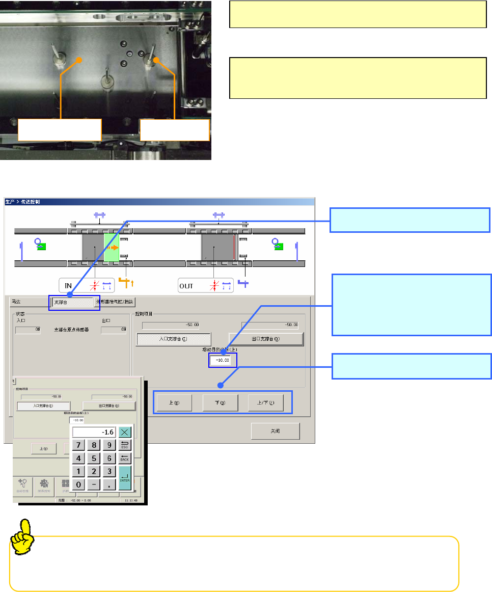 ② 把基板放在传送道上后,在传送控制画面中进行操作,将「支撑台」升高。
