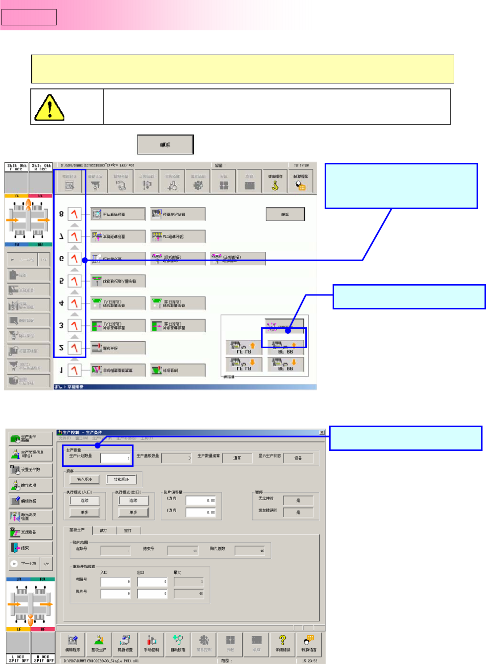 ※关于生产画面的详细说明请参见『操作手册Ⅱ』的“3-2-2 生产条件画面”