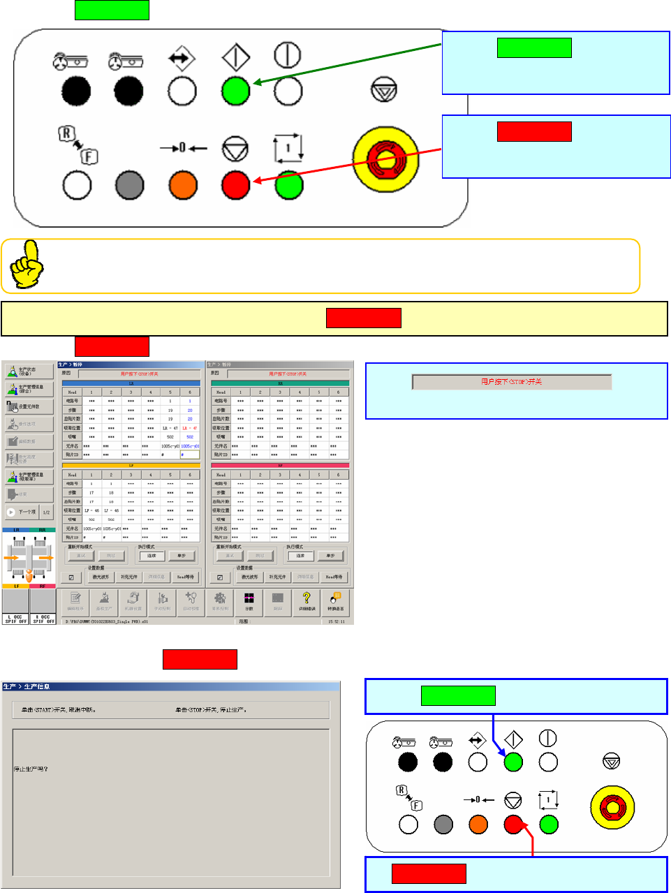 按 停止开关 ,生产即中断。