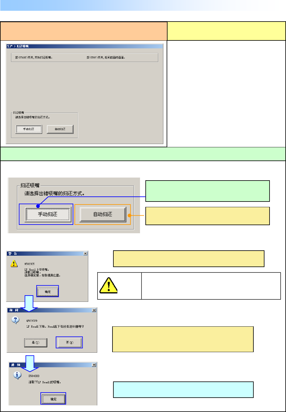 手动放回吸嘴,请根据提示把吸嘴卸下来。