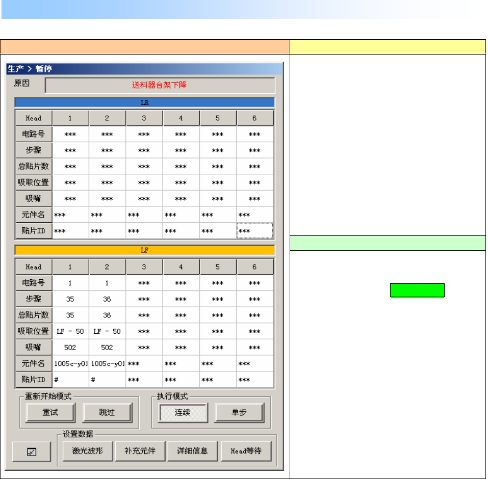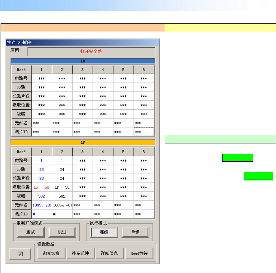 生产运行中(XY 轴移动中)打开保护盖时,显示如下画面,装置进入暂停。