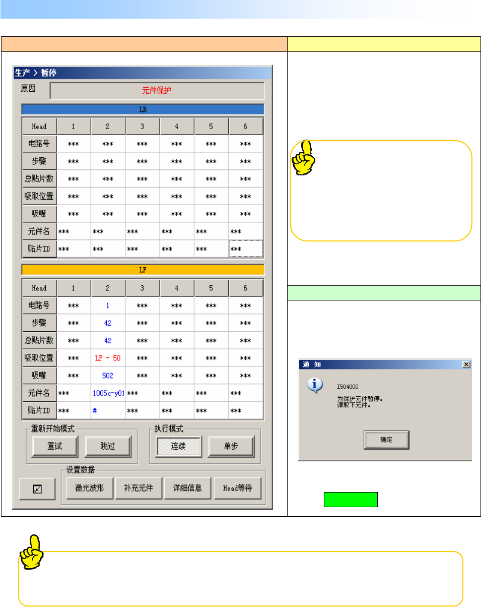 当设置「元件保护」的元件被识别出异常时,显示错误画面,装置进入暂停。