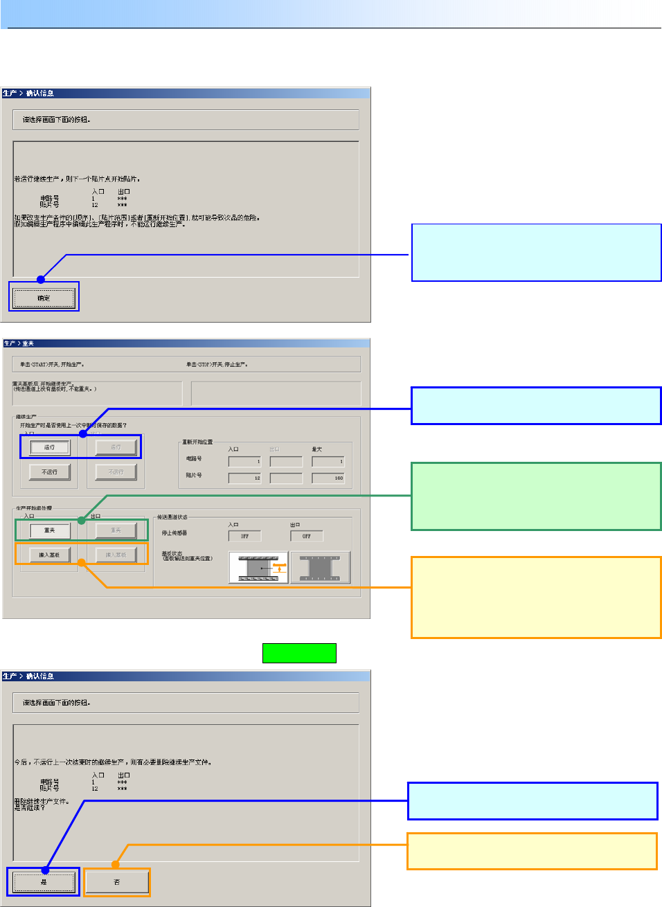 生产异常结束时(发生异步现象、生产异常结束)时,可按下列步骤继续生产。但是,这个运行至少要