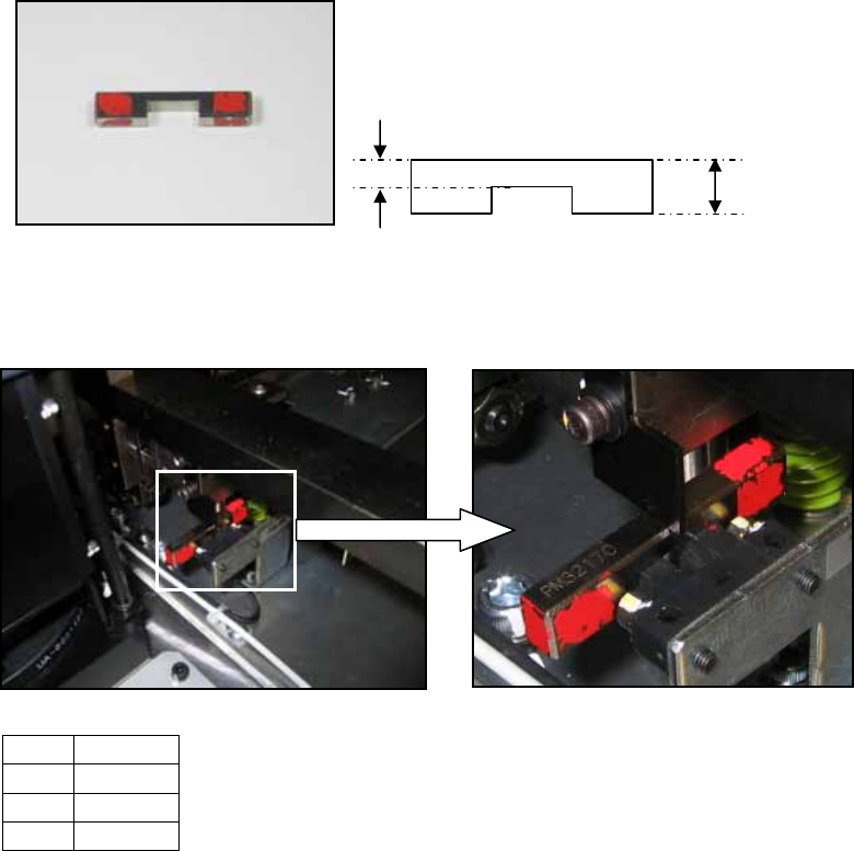 1.8 Lifter up/down sensor adjustment (previous t y pe) 1. The following jig is necessary for the adjustment. 2. Raise the lifter. 3. Place the jig (1) on the sensor (2) as shown below: 4. Adjust the position of the senso…