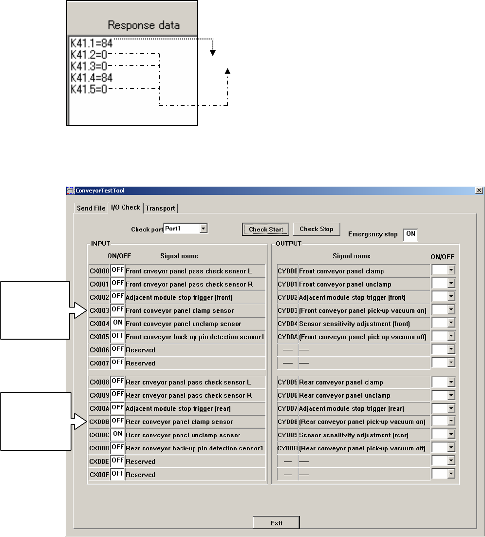 1. Select the [I/O Check] tab in the ConveyorTestTool and click [Check Start].