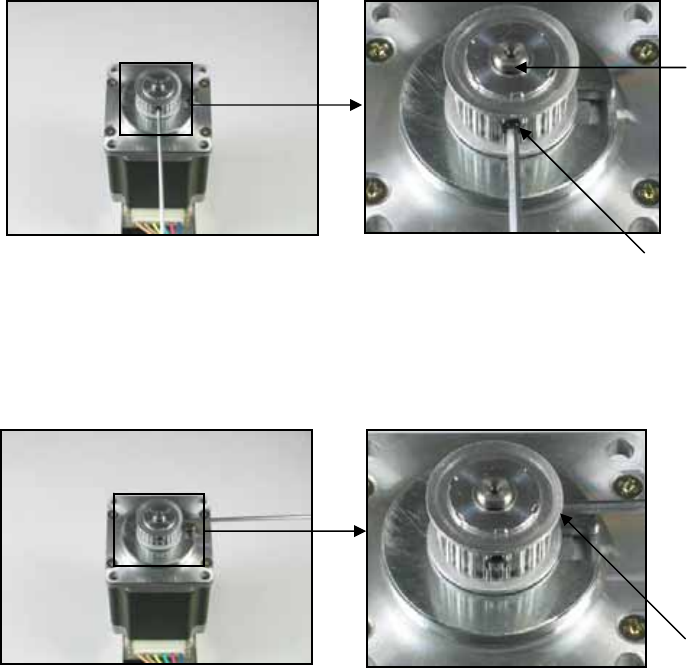7. Push the pulley onto the motor shaft so that the first (leftmost) tapping hole on the