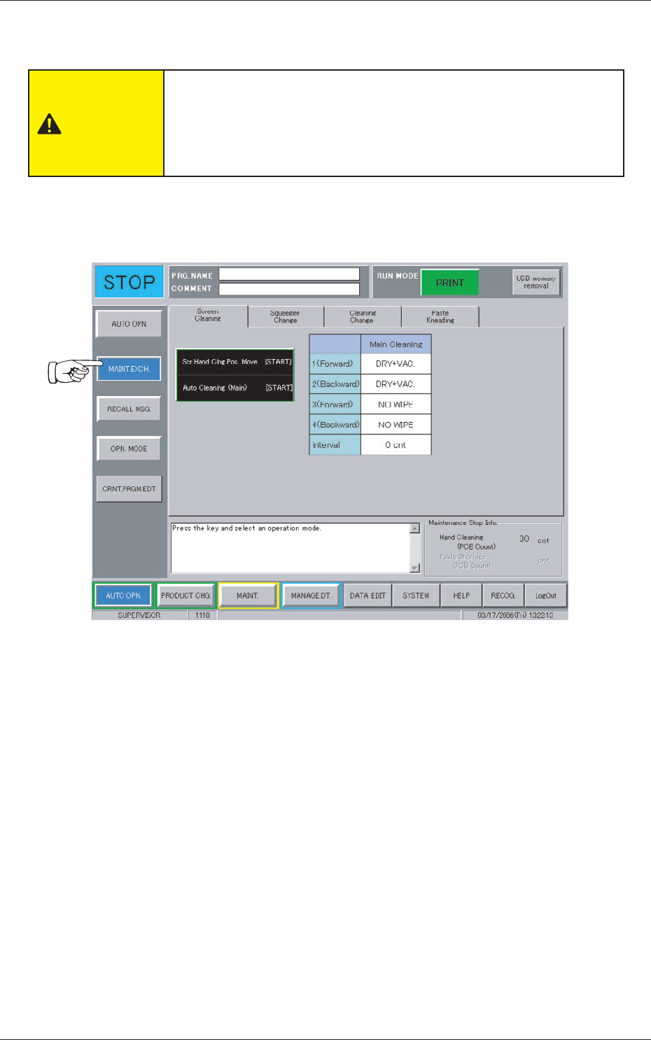 When the [MAINT. EXCH.] button on the "AUTO OPN." submenu bar is