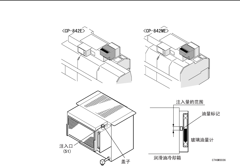 12 请从润滑油冷却箱上部的注入口慢慢地注入新的润滑油。